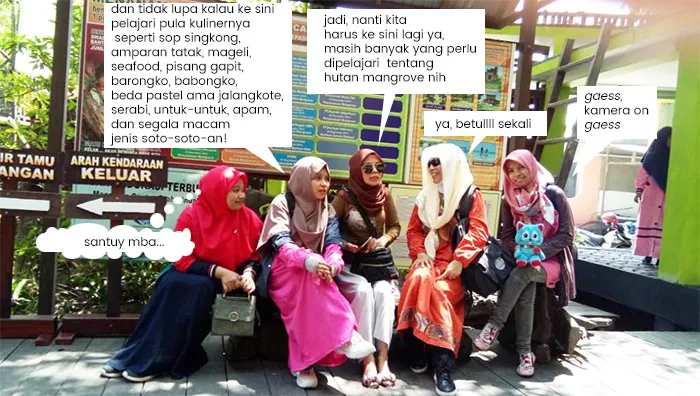 Ketika kami melepas pelampung, Pak Agus Bei rupanya masih ada di sana sehingga teman-teman sempat menyapa dan sedikit wawancara. Rupanya kawasan ini memiliki luas 150ribu hektar. Pak Agus Bei juga menyebut kelebihan hutan mangrove yang dapat menyerap karbon 10 kali lebih dari hutan biasa.